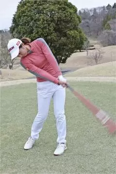 素振りするときは、クラブ以外のものも使います。コーチから「色々な重さのものを振ったほうがいいよ」と教わったので、野球のバットとかシャフトがフニャフニャの器具とか。そうそう柔道着の帯も振っていますよ。軽いものを振っているとスイングが速くなるじゃないですか。その反面バットのように重いものだと体の全体をしっかり使わないと振れないといいますよね。