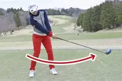 ●第3回:体をクルッと回してクラブを左に振り抜く&クラブの遠心力を利用して大きくスイング