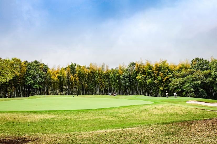 このホール、この光景、とても幻想的でした。竹林ってゴルフ場の樹木としてすごいポピュラーってわけじゃないとは思うんだけど、あったら必ず気がつく。まず見た目がシュっとして格好いいし、風が吹けばざわざわもする。夏にホール間をカートで移動してるとき急に涼しくなったらだいたい竹林に突入してるしね。
