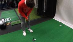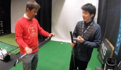 簡単なパットの傾向などの話をしながら、パターの長さを決めます。長さを自由に変えられるパターを使って、自分のアドレスでちょうど良いくらいの長さにしてみて、数球パッティングをしてみます。