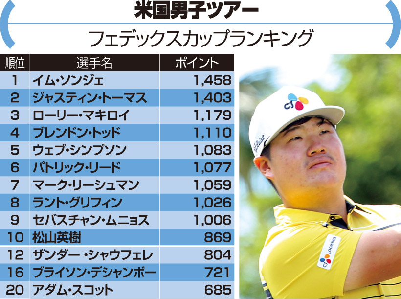 今シーズンは優勝2回、トップ10が6試合と抜群の安定感を見せるトーマスが賞金ランクでもトップに立っている。