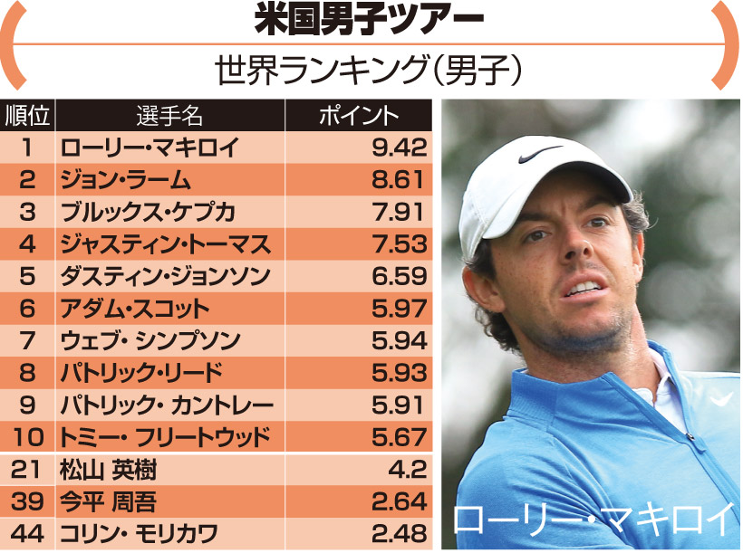 男女の世界ランキングは一時凍結。男子はマキロイ、ラームの欧州勢が1、2位になっている。