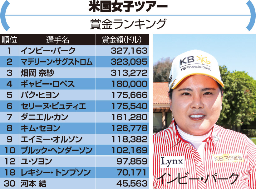 2月の「ISPSハンダ・オーストラリアオープン」を最後にツアーが休止。その試合で優勝したインビー・パークが賞金1位。