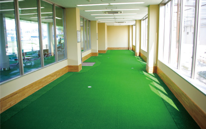 1階打席側から入室可能な屋内パター練習場も利用料は無料。こちらは室内なので、天候も時間も気にせずに、練習できる。おニューのパターを試したいときにも最適。