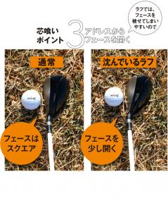 ラフでは、フェースを被せてしまいやすいのでアドレスからフェースを開く