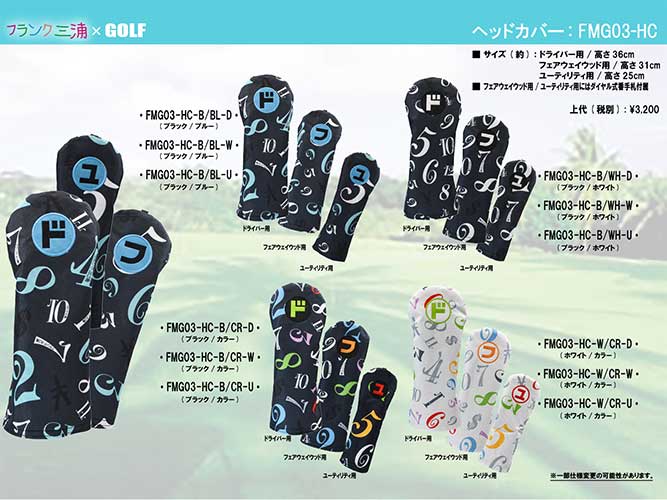 「ド」ドライバー 「フ」フェアウェイウッド 「ユ」ユーテリティ。一目でわかるインパクと遊び心満載のデザイン 必ず「何?どこのブランド?」と聞かれること間違いなし!