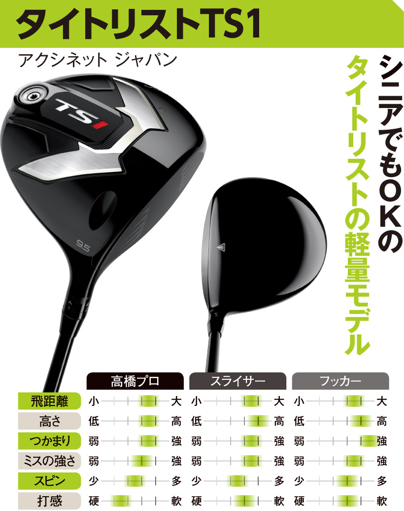 タイトリストはアスリート向けのイメージがありますが、このモデルは、球が上がりやすく、球のつかまりも抜群。しかも、軽量設計なのでアベレージゴルファーにピッタリです。