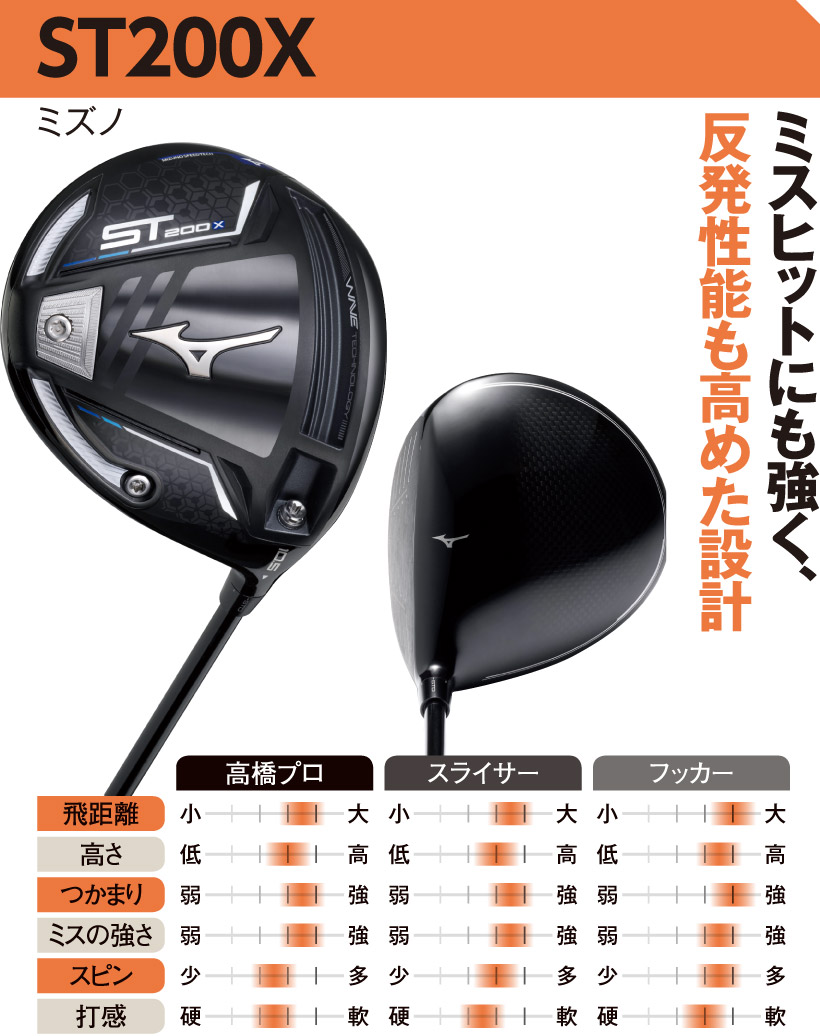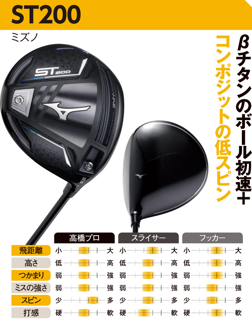 ST200に対して、球のつかまりが強化されています。中高弾道なのでフェード系の球筋でも球が上がりすぎないので飛距離が出やすい。どちらかと言えばヒッター向きです。