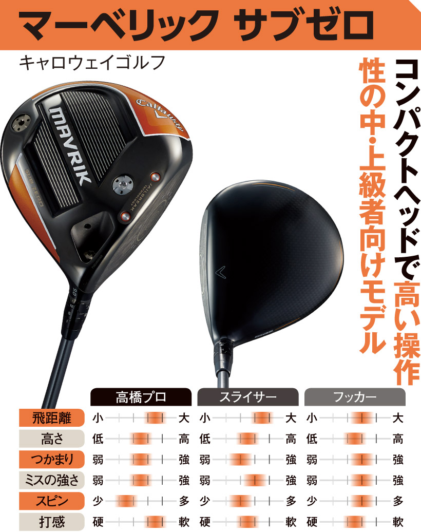小ぶりなヘッドで操作性が高く、球のつかまりは控えめ。左へのミスを恐れずに、安心して叩けます。球をつかまえられれば、高打ち出し低スピンで飛距離も出ます。