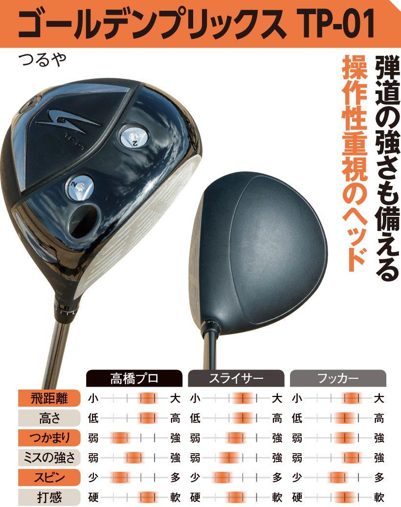 ヘッドをターンさせやすくフェースローテーションを使って振りやすいモデルです。適度な低スピンと球のつかまりなので大型ヘッドだとスライスするという人に!