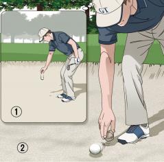 さて、問題は、くっついた小石をなんとかどけようとして、結局球を動かしてしまった場合。小石はどけたままで構わないが、球は1罰打で元の位置にリプレースしなければならない。