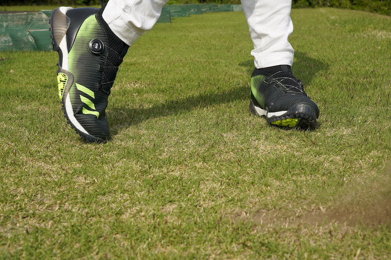 コース内の平らなところやライの悪いところ、それに傾斜地も歩いてみましたが、これは疲れにくいでしょうね。アディダスのゴルフシューズならではのクッション性能によるものなんでしょうけど、ソールが押し返してくるのがとてもよくわかります』
