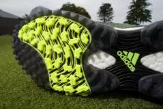 ゴムの上でも芝の上と同様の“すべり知らず”のグリップ力で足元は安定。