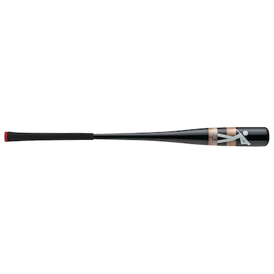 「パワー」と「スピード」を向上するために、両端に重さが異なる二つのグリップを装着した素振り用練習器具。赤グリップ側は軽く、黒グリップ側は重くなっています。赤グリップ側を持って振ると先端が黒グリップで重いので、体幹が鍛えられてパワーが身につきます。