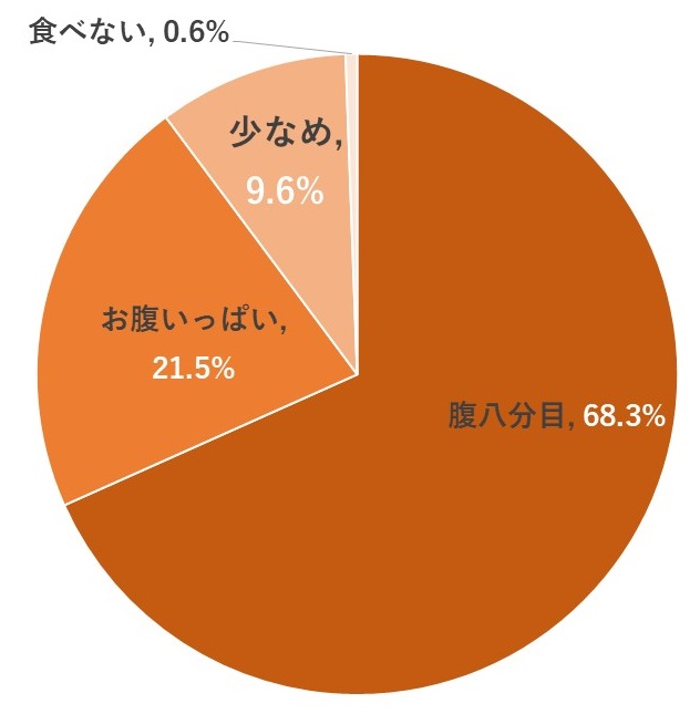 さて、次にお昼休憩で食べる食事の量を聞いたところ、以下のような結果になった。