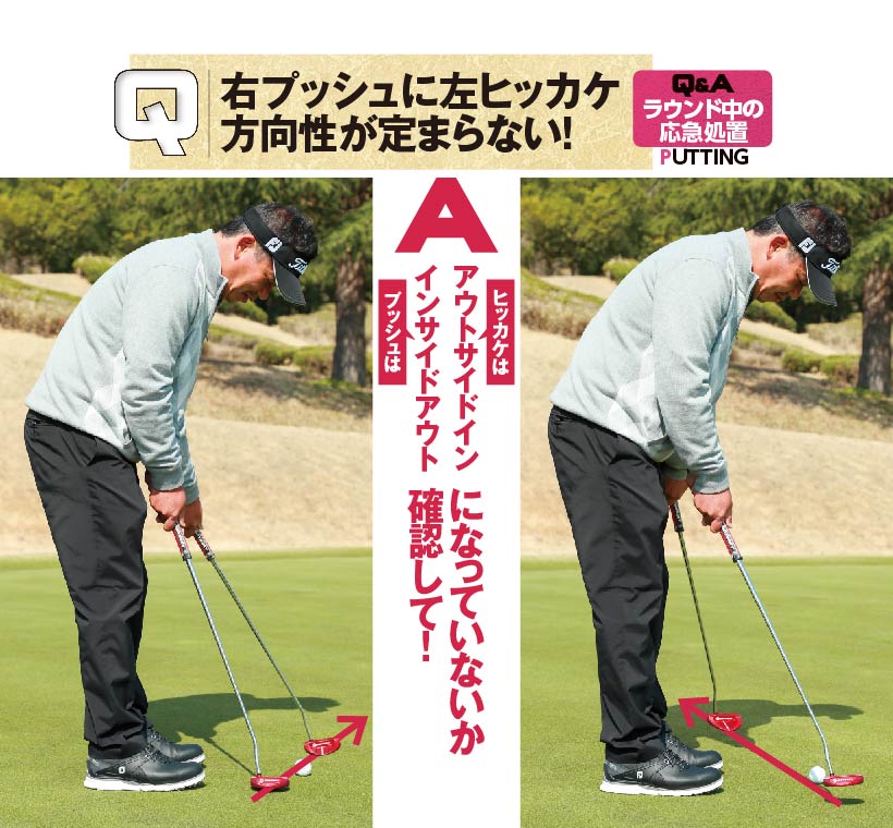 Q. 右プッシュに左ヒッカケとパッティングの方向性が定まらない!