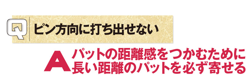 どうしてもピンに向かって打てない場面というのは、必ずあります。僕も試合中に打ち出す方向がわからなくなってしまう時があります。そんな時は、狙ったラインに向かって距離感を出していくしかありません。