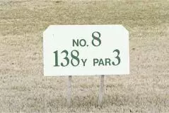 さてティショットをうまく打つためのポイントですが、まずティーイングエリアの横にあるヤード表示板を見て距離を確認しましょう。基本的にはグリーンの中央までの距離が表示されているコースが大半です。写真のようにグリーンの中央までが138ヤードでもピンの位置によっては実際の距離が変わってきます。
