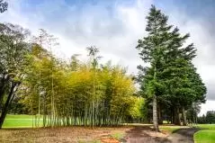 さて、前回も書きましたが、どうしようもなく美しく、気持ちを穏やかにさせてくれる千代田CC。西コースでは竹林に囲まれた3番PAR3が景色的にお気に入りでしたが、クラブハウスから中コース1番PAR5に向かうこの道もこれまた竹が並んでて壮観なんですよねえ。まさに『シグネチャーホール間(※用語集参照)』です。ああ、心が洗われる。またここを歩きたい。できれば風に吹かれて歩きたい。