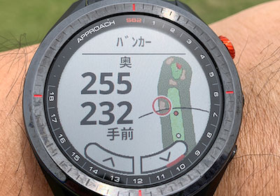 そして右のバンカー、左のバンカーと両側にバンカーがあっても、ワンタッチで調べたいバンカーを切り替えられる。これをレーザースコープでやろうと思うと、結構面倒だし、正確に計測するのは難しいんだよね。そういう距離がしっかりと把握出来ていればコースマネジメントに本当に役立ちます。