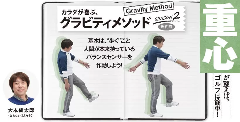 今回はこれまでに紹介したレッスンのおさらいです。「グラビティメソッド」の基本は、“歩く”ようにスイングすること。