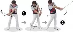 スイング中、カラダの分離動作を行うには、「テコ」を使ってクラブを動かすのが効率的だ。力の引っ張り合いを生み、ヘッドを走らせることが出来る。