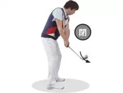 バックスイングでは、左手が下方向、右腕が上方向に分離して動くのが正しい。