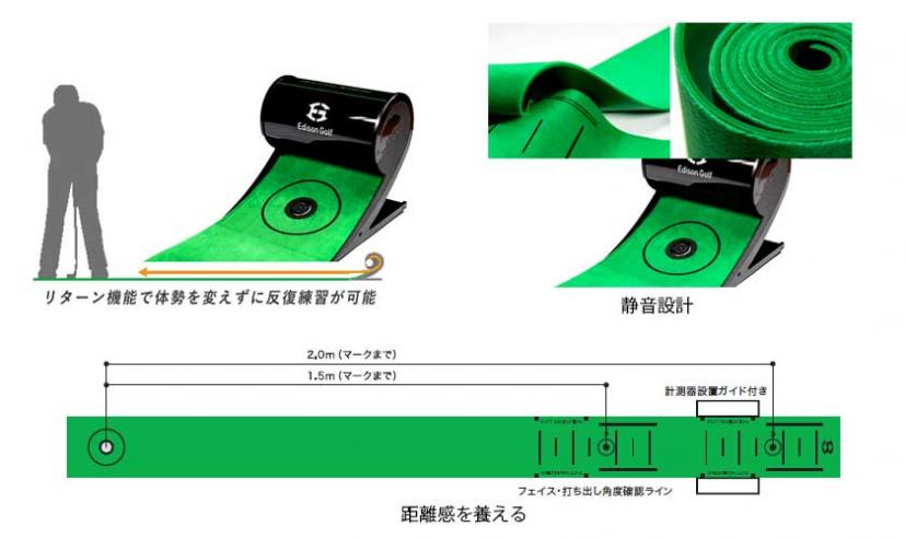 エジソンゴルフから「リターンマット」「パットナビゲーション」が発売中。それぞれ単体でも画期的なパット練習が可能だが、一緒に使うと更に効果的だ。