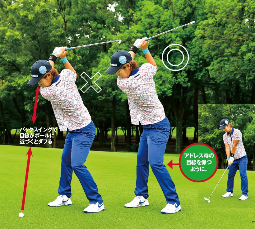 バックスイングで目線がボールに近づくとダフる