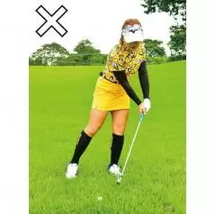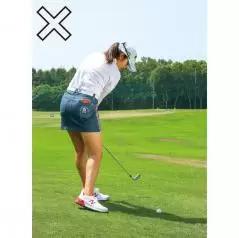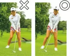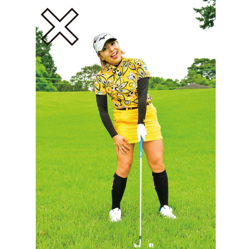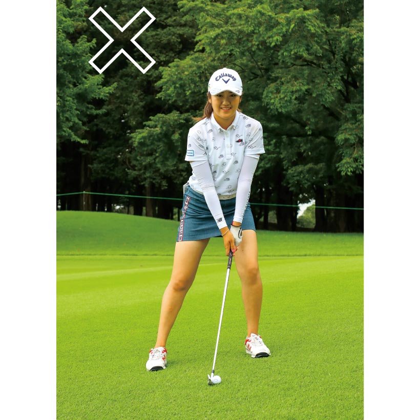 “下目使い”でアドレスできるとアゴが上に引かれて上体がほどよく起きたいいアドレスになる。