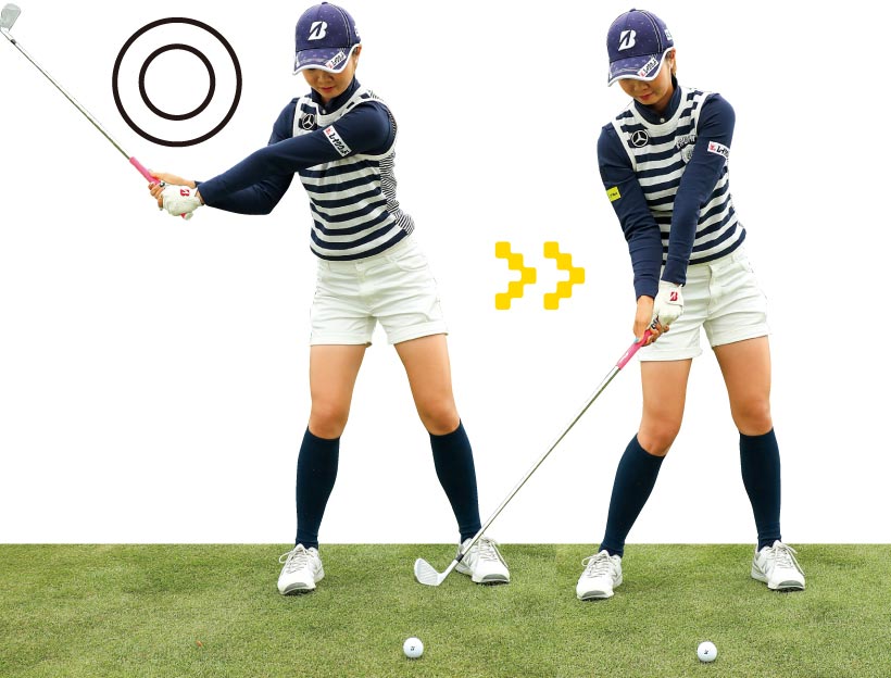 コンパクトスイングでボールを潰すように