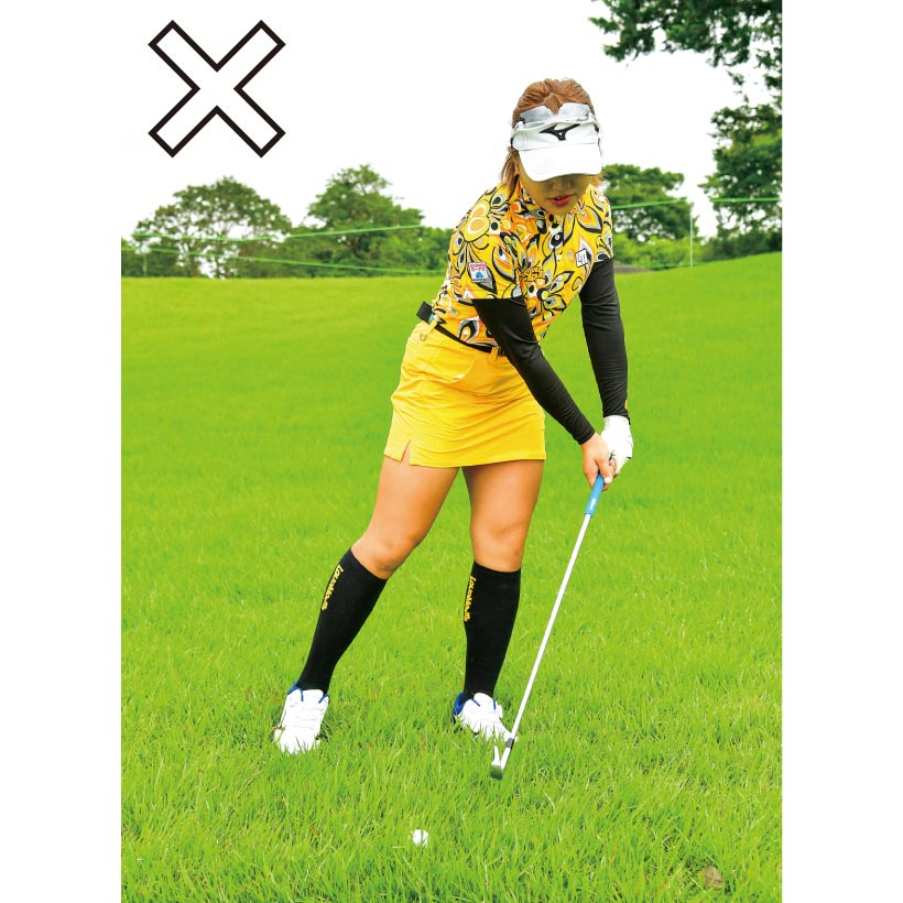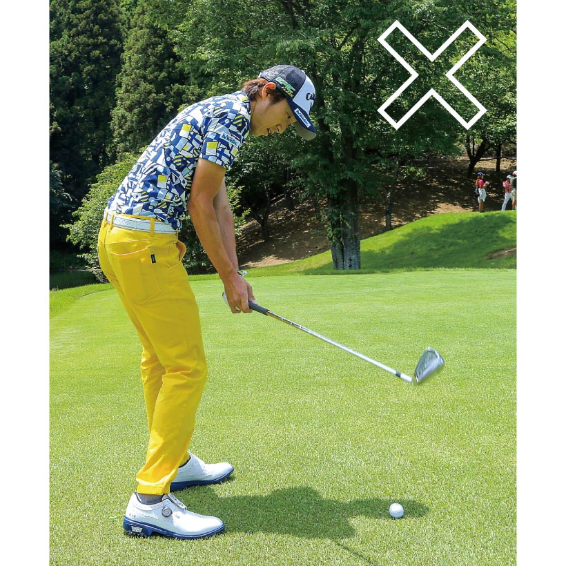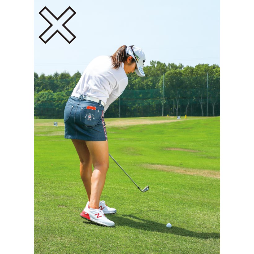 このケースではスイングよりアドレスが悪くなっていることが多い。ちゃんと当てようと思うあまりボールに目が向き、猫背のアドレスになってしまうんです。これだと体が回らず手打ちになってダフります。