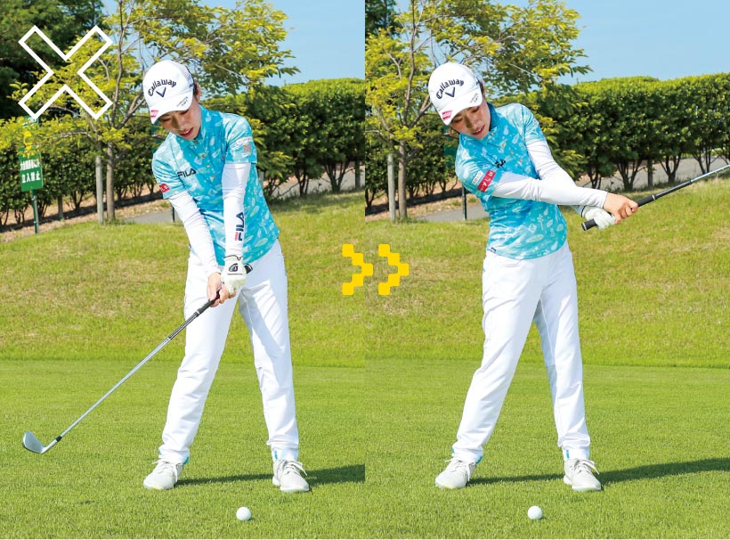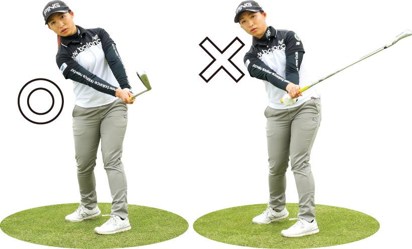 フェースの向きをそのままにフォローを出せば、右肩が前に出にくくなる