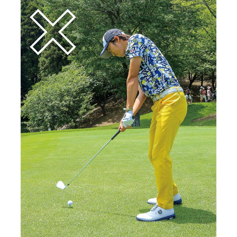 すると、アウトサイドからヘッドが入ったり、それを修正しようと右肩を下げて合わせにいってしまうんです。