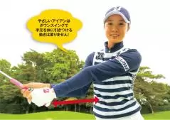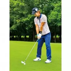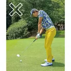 アマチュアの方は、手首で球をすくうようなインパクトをしている場合が多いです。アイアンは、スイング中にムダな動きをしなければ、シンプルに高弾道で飛ばせます。ダウンスイングで手首を使うことが、ミスの原因です。そうならないために右打ちの方はトップから左手の甲、グローブのロゴ部分を飛球線方向、2メートル先の地面に向かって下ろすイメージでスイングしてみましょう。