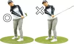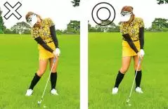 手だけでクラブを振ったり、合わせにいって右足に体重が残ってしまっては意味がありません。