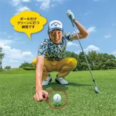 僕は、調子が悪いと球が右に出てプッシュやスライスになるので、ボールをつかまえる練習をします。ティアップの高さは1センチくらい。この練習のポイントは、ボールだけをクリーンに打つこと。そもそもボールをつかまえようと、ヘッドを上から入れようとしてアウトサイドイン軌道になるのが、右に出る原因。