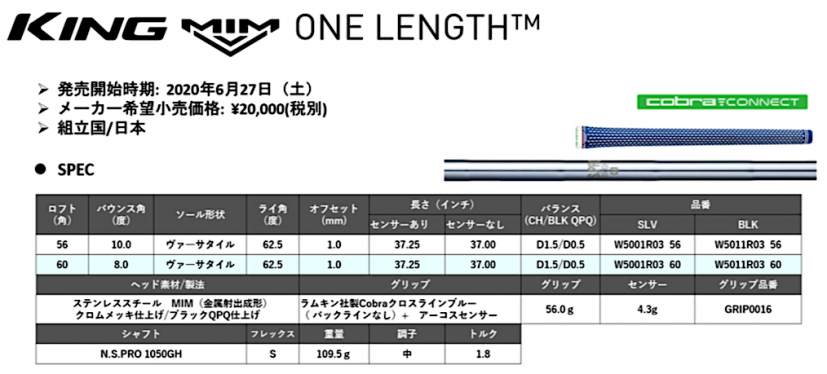 - コブラ プーマ ゴルフが、MIM製法をヘッド全体に初めて採用した新しい「KING MIM WEDGE」「KING MIM WEDGE ONE LENGTH」 を発売