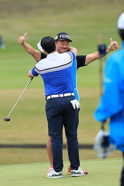 14番で重坤選手がバーディを獲り、その差は1打に縮まった。対する今平選手は15番、16番と連続ボギーを打ち、なんと重坤選手が逆転。運命の18番ホールを迎える。