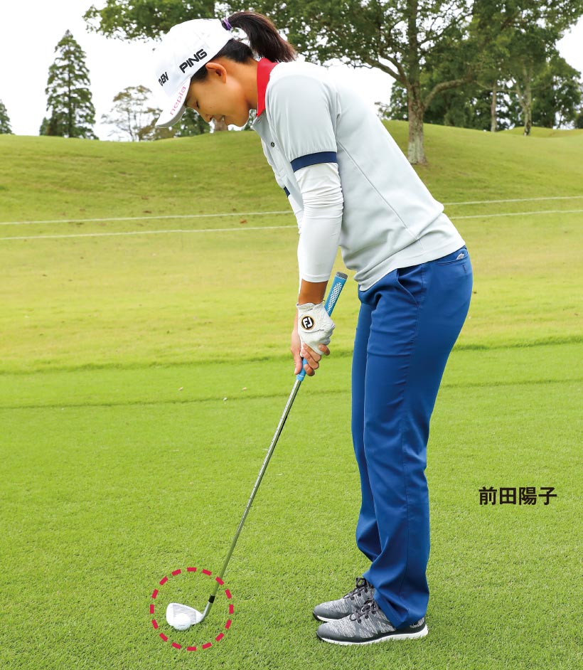 こうすればチャックりはしません。打つ距離はヘッドを下ろす位置で調整します。距離があるほど滑らす範囲が短くなりますが、正直、距離感を出すのはプロでも難しいですね。