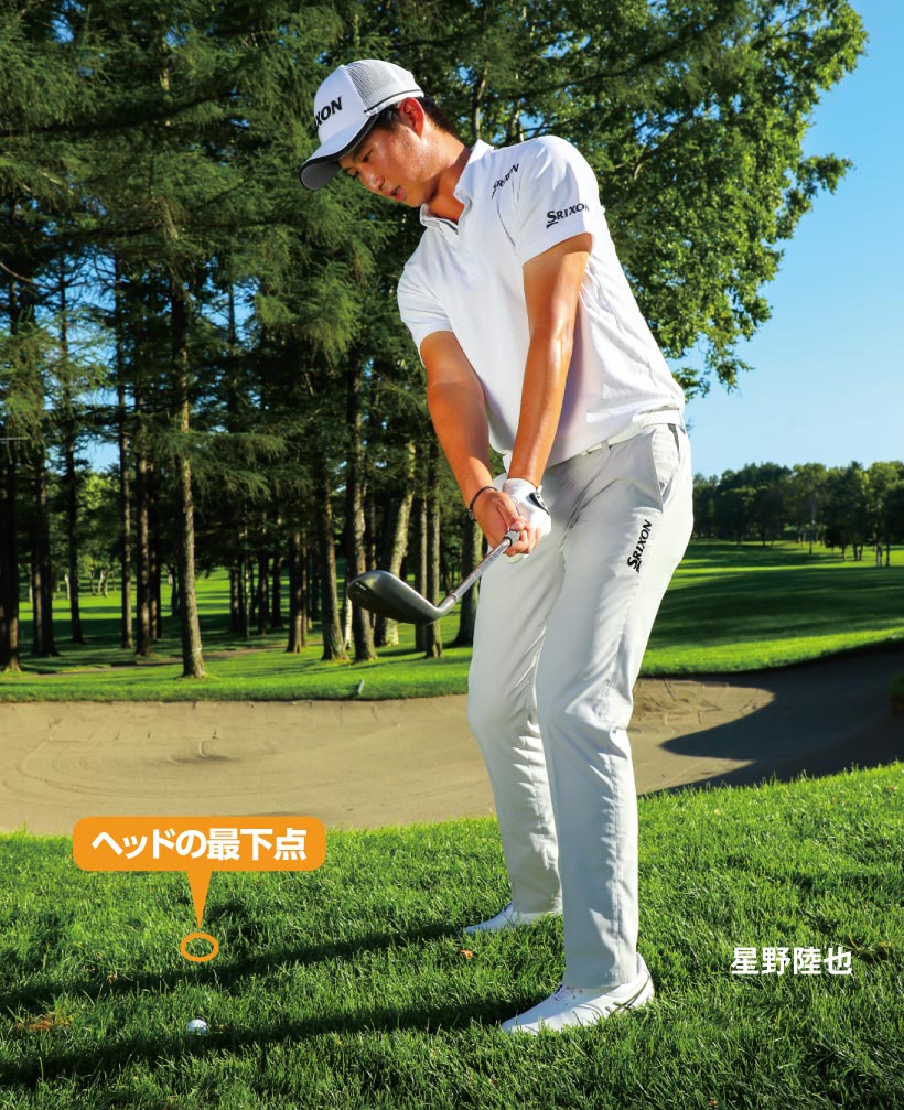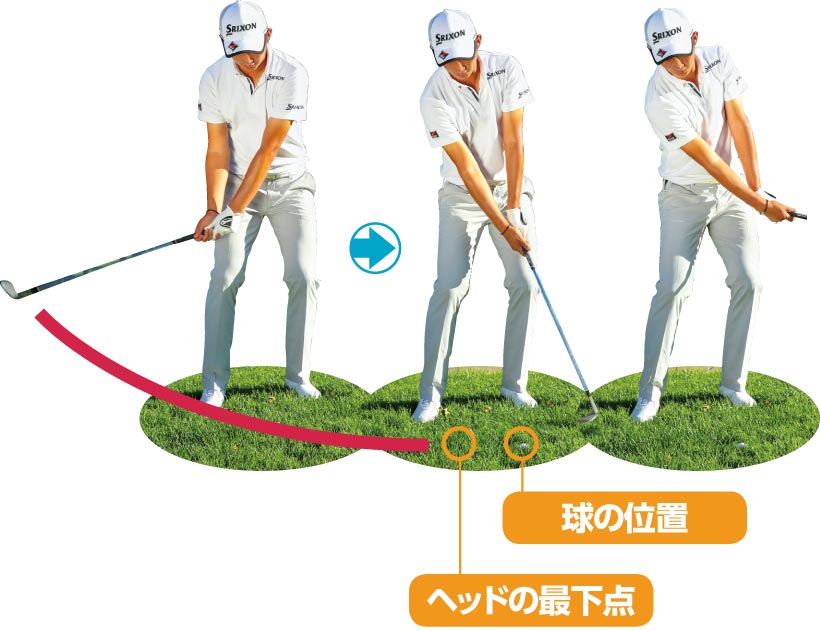 A. ヘッド軌道の最下点を超えてからインパクト!