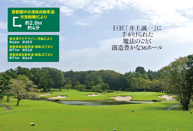 東京·横浜方面からもスムーズにアクセス。開場以来、心血を注いで育まれ、成熟の時を経て、高い戦略性と重厚さを重ねもつチャンピオンコースは、ゴルファーの挑戦を待つ。