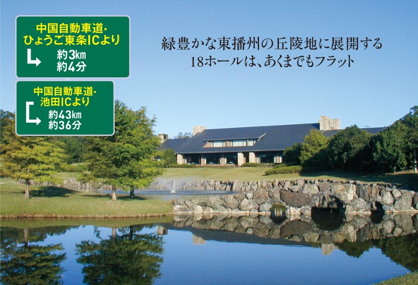 大阪市内から約50分のアクセスを誇る、東条湖南東部のなだらかな丘陵地に広がるフラットで雄大なコース。フェアウェイも広く、初心者から上級者までゴルファーを魅了する。