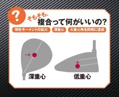 重心深度を深くするとヘッドの慣性モーメントを拡大しやすいが、フェース面上のスイートスポットが高くなるのでバックスピンが増えやすくなる。そこで同時に低重心化する必要が生まれるが、これらを同時に達成するためには複合構造が必要となる。
