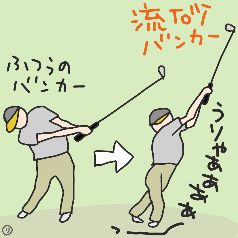 このバンカーが、ほんとにもう、クセモノで。コース内のバンカーも一緒なんだけど。