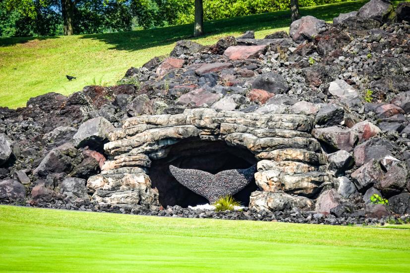 おや、グリーン右奥に見えるのは、躍動感のあるクジラさま。