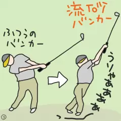 ほんでね、目玉ってね、フェース閉じて打ったりするっしょ。これ、その方法じゃ出ない。ズブズブ埋まる。だからってフェース開いてもダメ。なんだよ、どーしろってゆーんだよ。途方に暮れてたら上級者が教えてくれた。