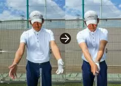 そして、テークバックの始動で左手を押し下げて、その流れに乗ってバックスイングしていきます。