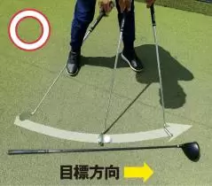 このポイントはある意味ではダウンブローの一番の肝ともいえます。多くのゴルファーはターゲット方向に向かって体を一生懸命に回そうとしたり、クラブを振っていこうとしたりします。つまりパワーのベクトルをターゲットに向けてしまっているのです。残念ながらそれではダウンスイングで体が早く開き、球をダウンブローにとらえにくくなります。