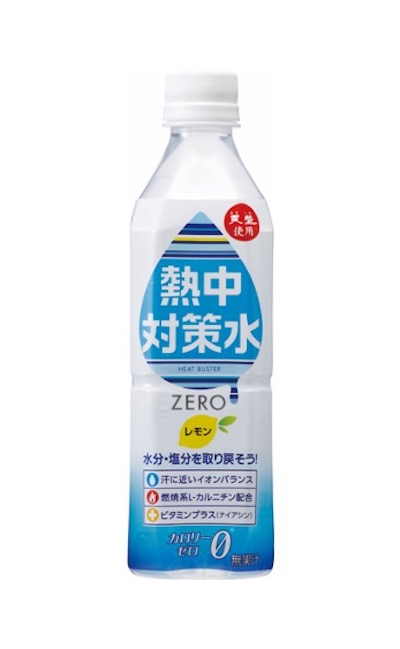 汗に近い成分が補給できる熱中対策水。カロリーゼロ、かつ脂肪の燃焼を助けるL-カルニチンを配合しているので、ダイエットもサポート。